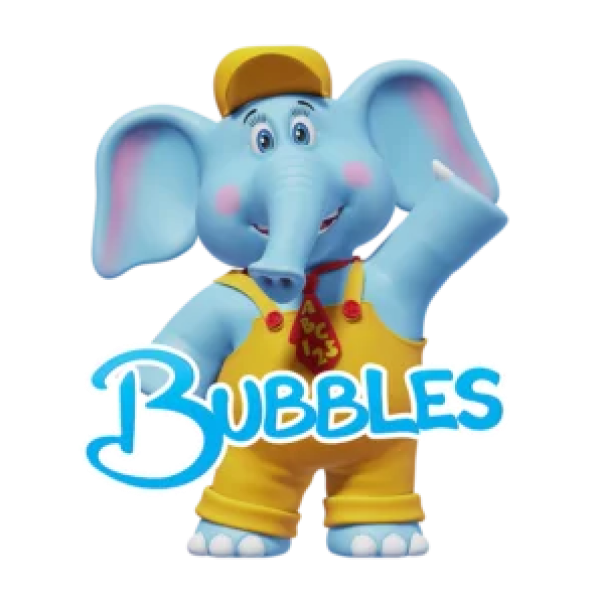 Bubbles the Elephant®, our cherished mascot, takes our little learners on a daily adventure in their classroom and makes them happy to learn, play, and grow.